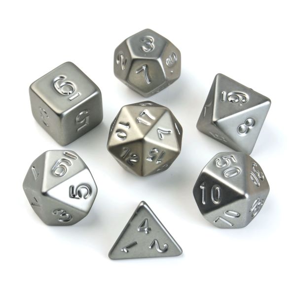 Grey Electroplated Metal Polyhedral Dice Set for D&D and Tabletop RPGs.